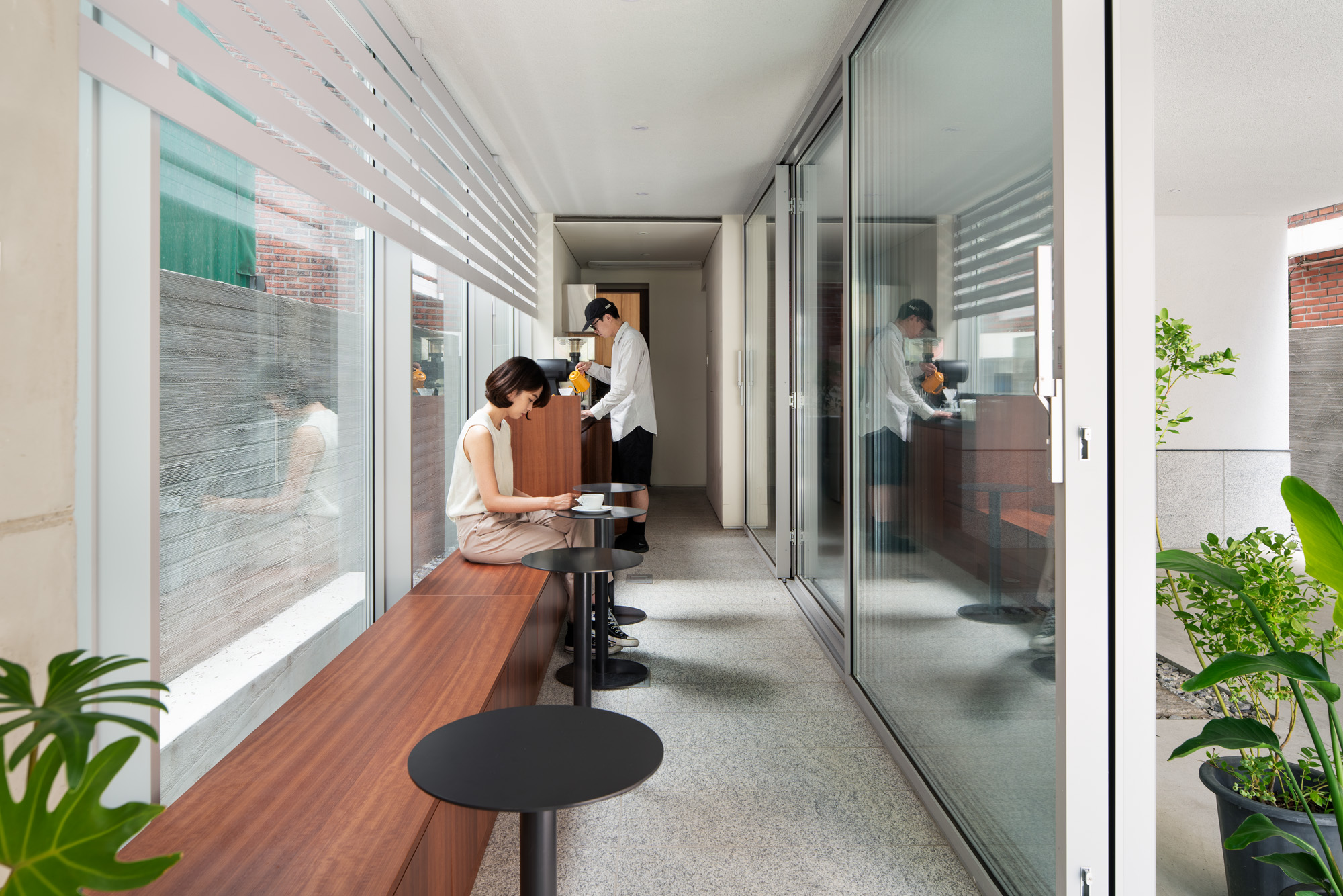 담대하게 커피워크는 작은 공간이지만, 서로 다른 이용자인 바리스타와 손님의 시선이 머무는 곳을 다르게 유도하며 각자가 커피에 온전히 집중할 수 있는 공간이 되길 기대합니다.